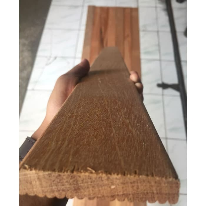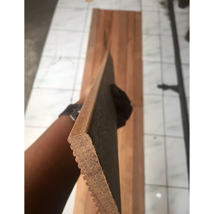 Untuk ukuran tebal 1.2cm dan lebar 6.5cm dalam setiap papan ada 2 permukaan yang berbeda yaitu permukaan rata dan permukaan bergaris alur anti slip