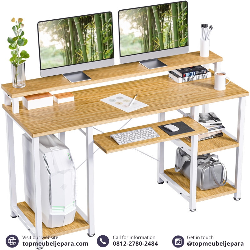 Meja Komputer dengan Besi Holo Kokoh dan Desk Shelf Panjang