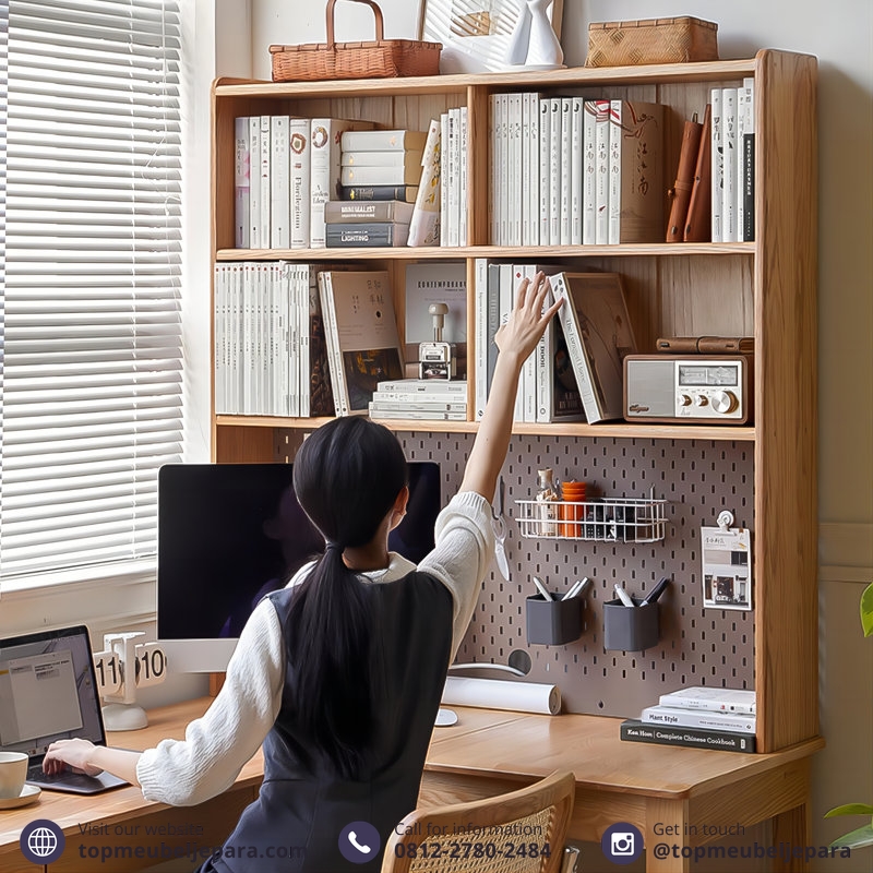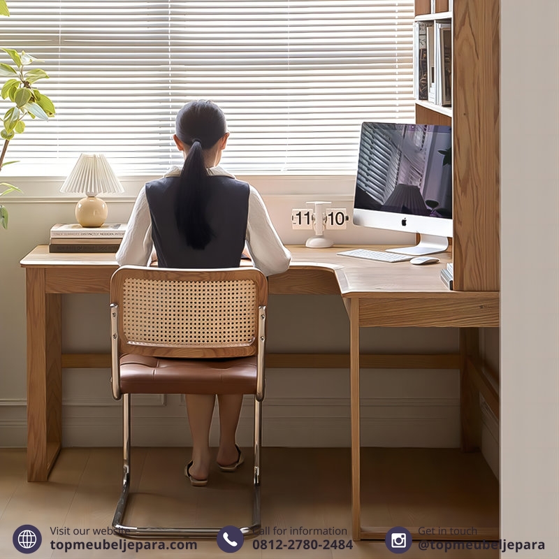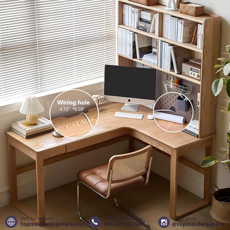 Meja Sudut Berbentuk L dengan Rak Buku Serbaguna
